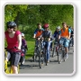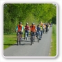 Wir fahren mit dem Fahrrad, sperriges Gepäck wird transportiert.