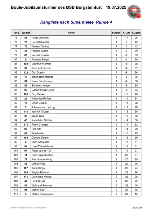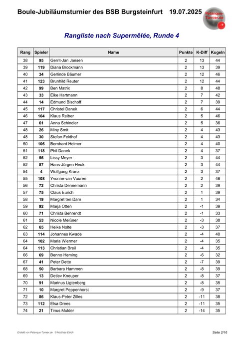 Alle drei Teams konnten bei der LM in Köln je zwei Siege für sich verbuchen, verpassten dadurch jedoch die Teilnahme an der Deutschen Meisterschaft Triplette-Veterans 2025 in Berlin.