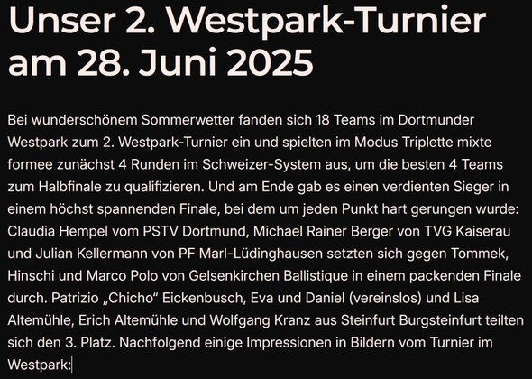 - 28.06.2025 - 2. Westpark Turnier Dortmund 2025