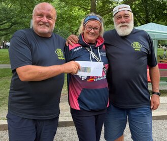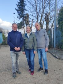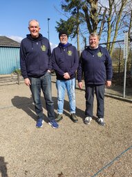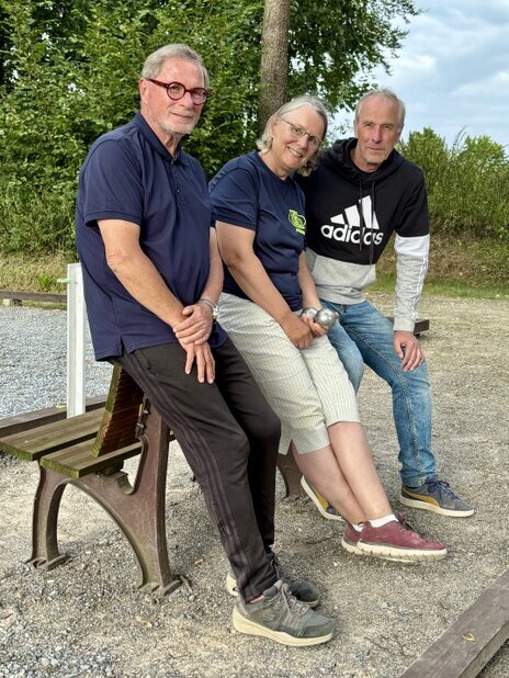Benno Heming, Dieter Radisic und Johanna van de Logt spielten am 6. September um die Qualifikation für die Landesmeisterschaft Tete a tête in Recklinghausen Suderwich.