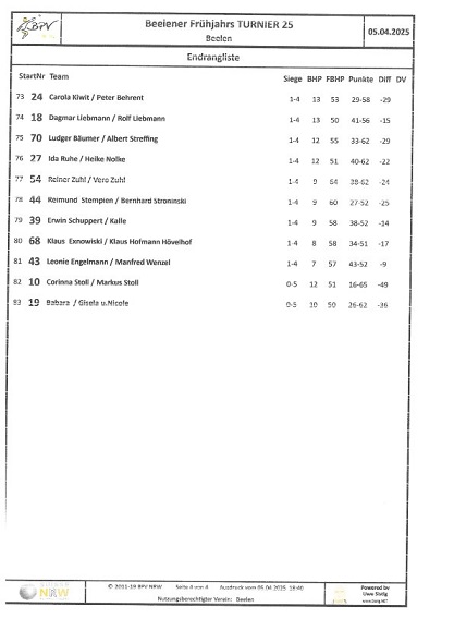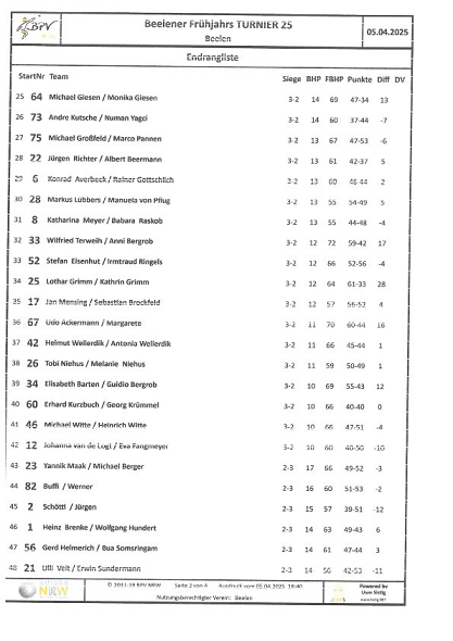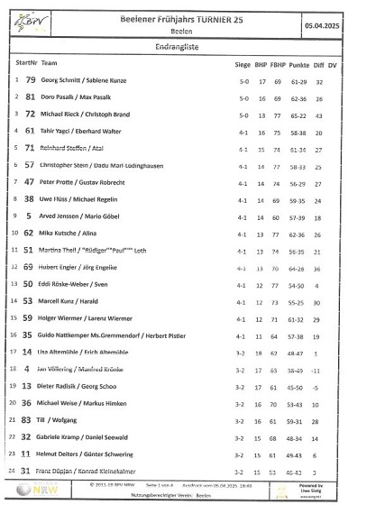 05.04.2025 - Doublette Frühjahrsturnier in Beelen