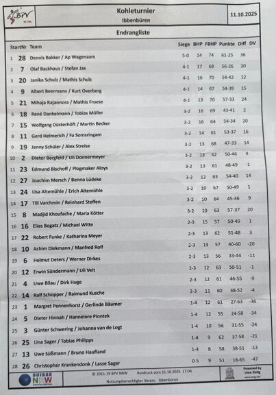 - 11.10.2025 - Kohleturnier 2025 in Ibbenbüren