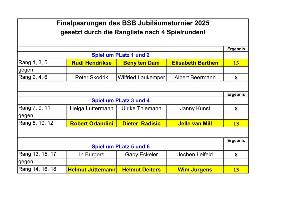 Nach der Vorrunde, bestehend aus zwei Spiele, konnte sich das Team um Helmut, Werner und Georg für den Poule A qualifizieren.
