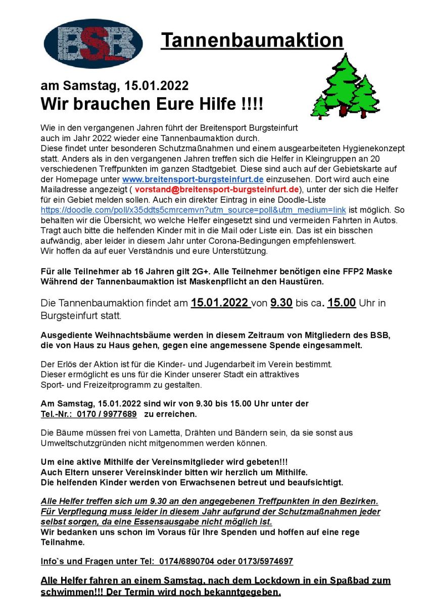 am Samstag, den 15.01.2022 sammelten wir alle ausgedienten Weihnachtsbäume ein. Die Stadt wurde in viele Gebiete aufgeteilt und dann sind wir in kleinen Gruppen von Haustür zu Haustür gegangen und haben gegen eine kleine Spende den Weihnachtsbaum mitgenommen.