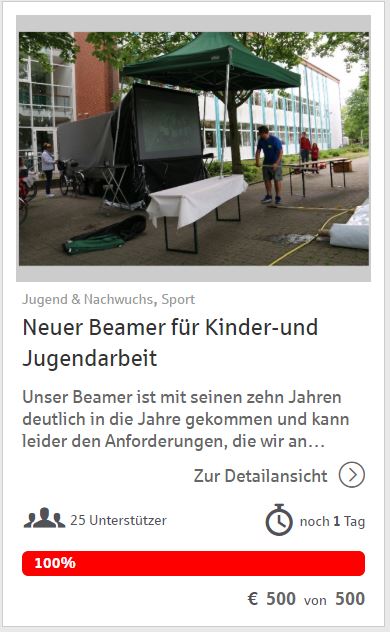 auf der Spendenplattform der Sparkasse haben wir unser Spendenziel für den neuen Beamer erreicht.