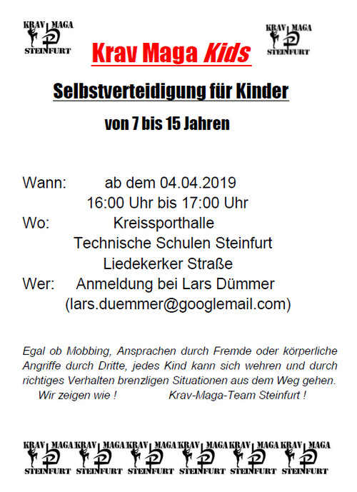 ab dem 4.4. bieten wir eine neue Krav Maga Sportstunde an.