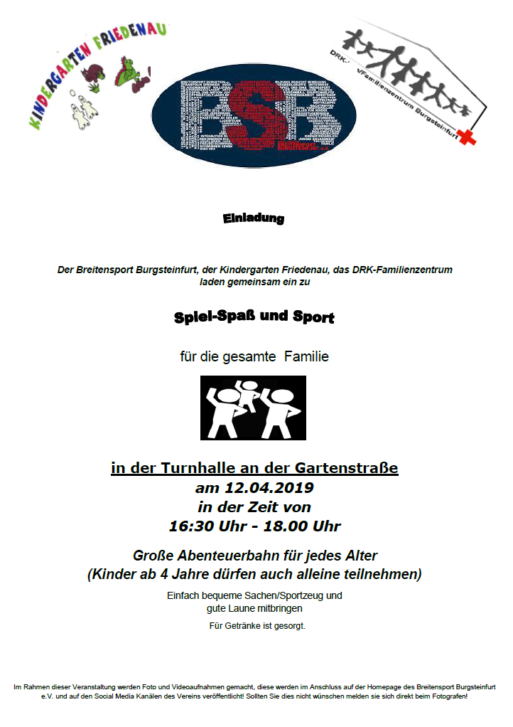 Wir freuen uns auf viele Besucher am 12.04.2019 in der Sporthalle an der Gartenstraße.