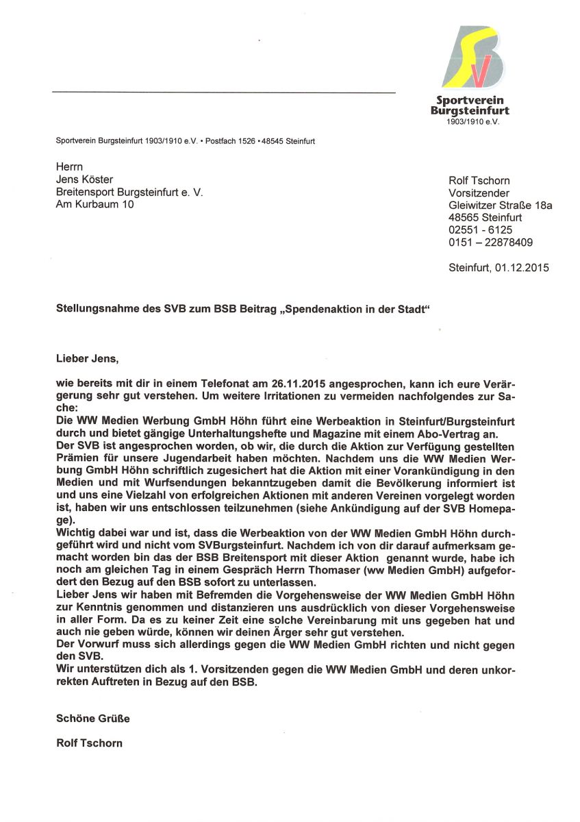 hier kommt die Stellungnahme von Rolf Tschorn, dem 1.Vorsitzenden des SV Burgsteinfurt.