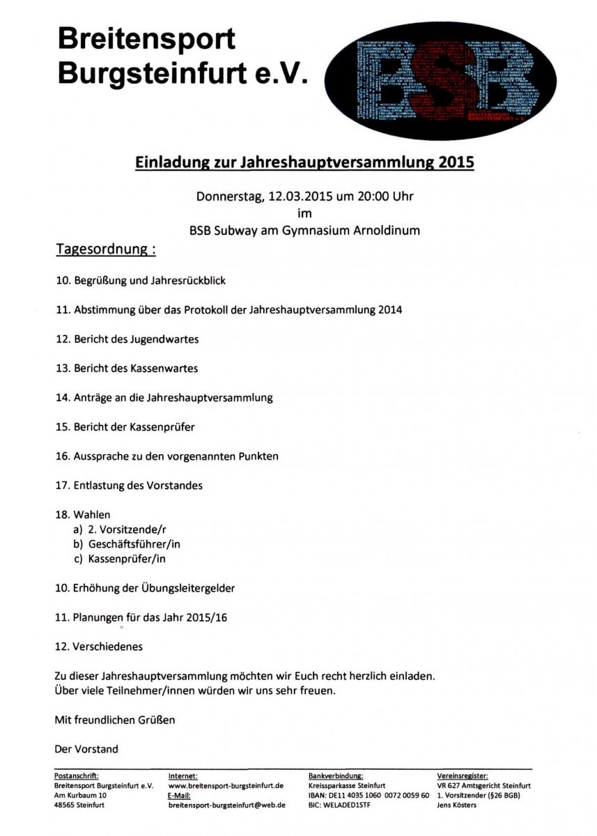 wer gerne wissen will, wie es dem BSB geht, wer mitbestimmen und mitreden möchte, der sollte zur BSB Jahreshauptversammlung kommen. Am 12. März 2015 ist es wieder soweit.