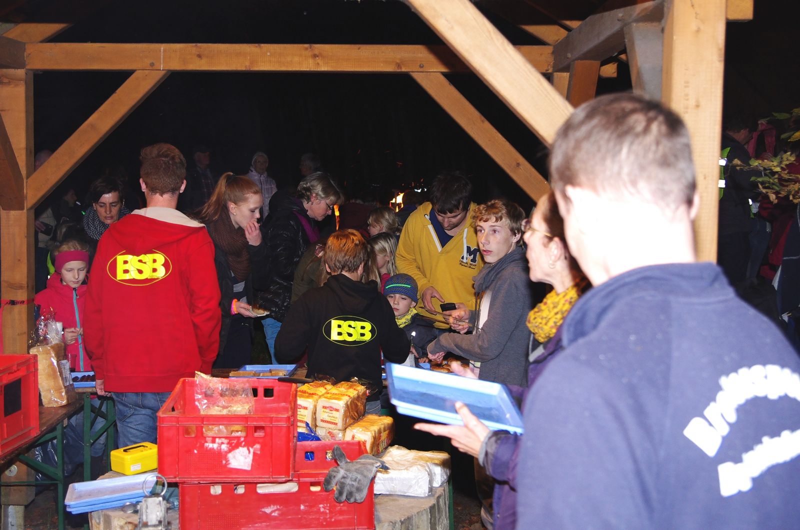 Den inzwischen angekommenen Wanderern schmeckten die Würstchen sehr gut und die Kinder genossen den warmen Zitronentee. Der Schützenplatz füllte sich weiter mit Nachzüglern und alle waren von der Schönheit, der wunderbaren Abendstimmung zwischen den hohen Bäumen dort sehr angetan. Mit einsetzendem Nieselregen um kurz nach acht, kam dann auch schon der Bus für die Rückfahrt zum Bahnhof.