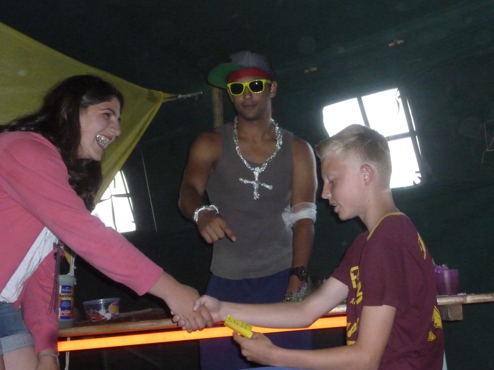 Natürlich hat es auch geregnet. Ruck-zuck stand einmal der Zeltplatz unter Wasser. Überall rann der Regen die Dünen hinunter und sammelte sich in großen Pfützen. Aber die Bodenplanen hielten das Wasser draußen und die Zelte blieben dicht und trocken. Fahrrad Touren wurden unternommen und auch die ein oder andere Wanderung gemacht. Abends traf man sich im großen alten russischen Armeezelt um gemeinsam zu spielen. Herzblatt, Eins-zwei oder drei oder Amelander Supertalent hießen die Shows die Teilnehmer und Betreuer gemeinsam auf die Beine stellten. Natürlich durfte eine Lagerhochzeit nicht fehlen.
