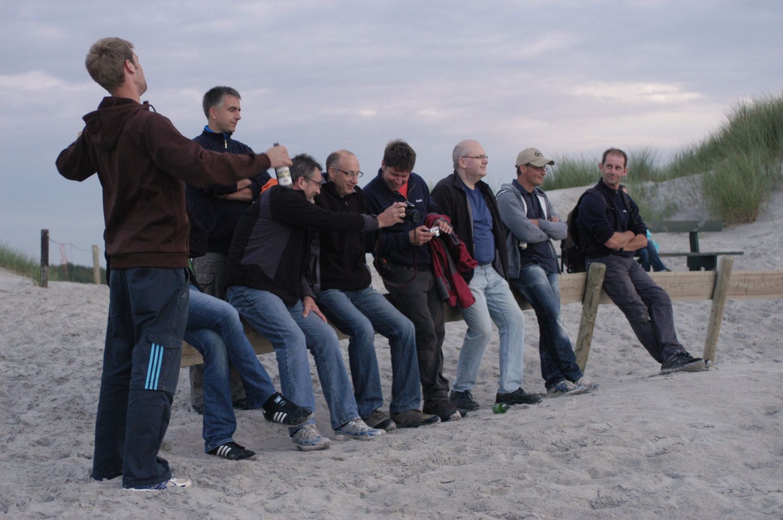 Das Aufbauteam hatte auch Zeit für ein gemütliches Bierchen am Strand