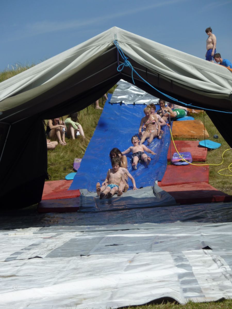 So haben wir gestern eine Wasserrutsche der ganz großen Art aufgebaut und der Spaß Faktor war kaum zu übertreffen. Heute werten wir die Ergebnisse vom „Superzelt Wettbewerb“ aus und mal gucken wer aufgeräumt hat und wer nicht.