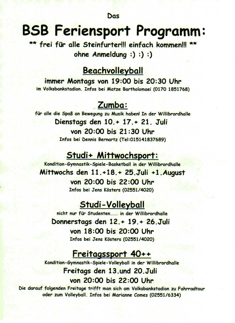 Auch in den Ferien werden wir einige Termine Zumba anbieten. Ein BSB Ferien-Sport-Programm wird in den nächsten Tagen veröffentlicht.