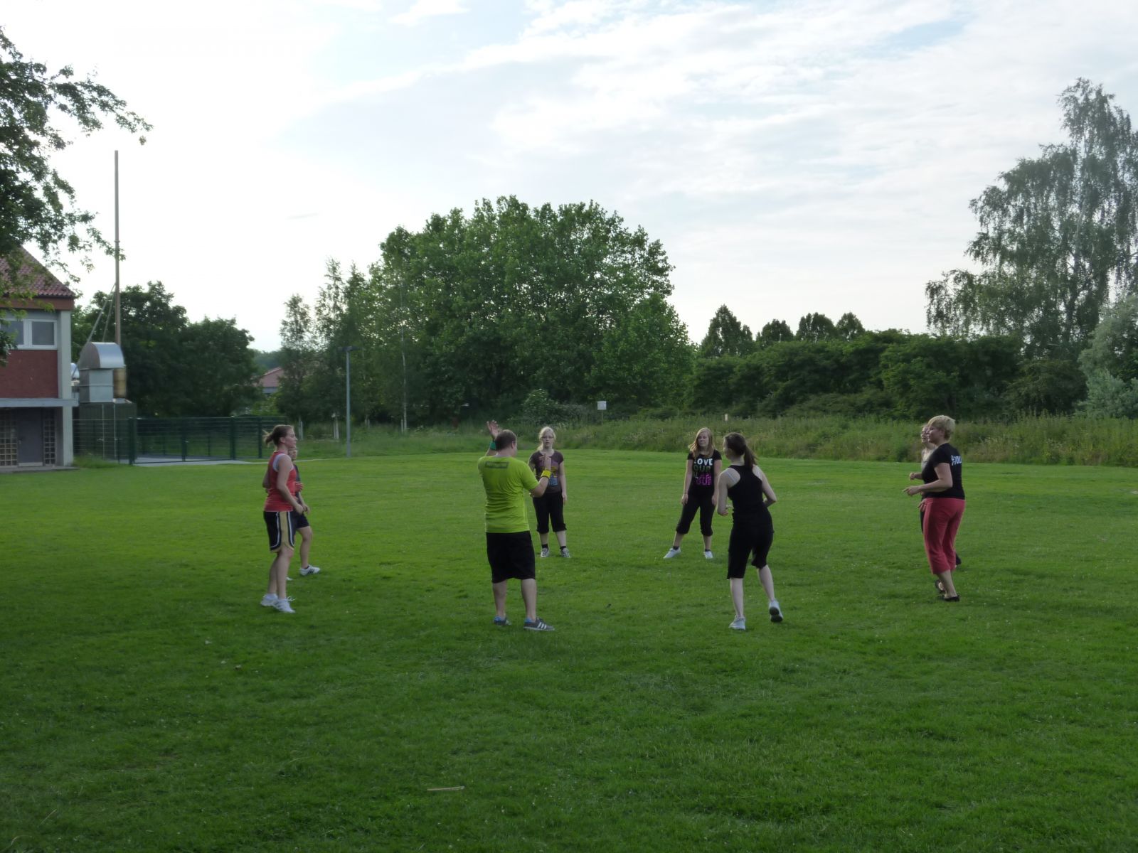 Das wir unseren Sport nur sehr ungern ausfallen lassen konnte man gestern Abend wieder sehen. Da die Elisabeth Sporthalle geschlossen war, machten die Zumba Damen und Mädels kurzerhand Training auf dem Rasen vorm Subway.