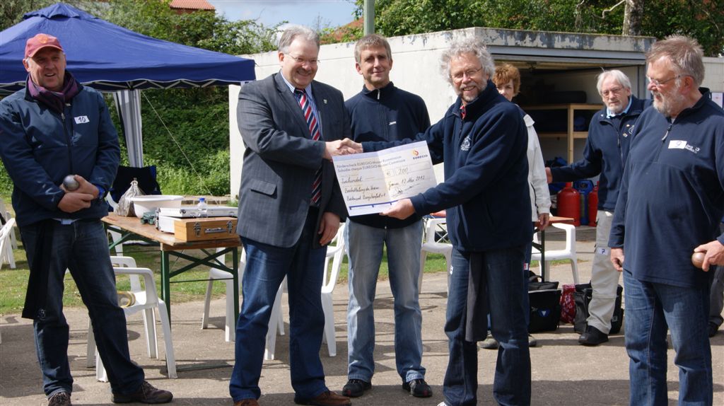 Im Rahmen der Unterstützung grenzüberschreitender Veranstaltungen wurde das Turnier diesmal von der EUREGIO unterstützt. Bürgermeister Hoge überreichte in seiner Eigenschaft als Mitglied des EUREGIO-Rates dem Verein Breitensport Burgsteinfurt einen symbolischen Scheck in Höhe von 200 Euro.