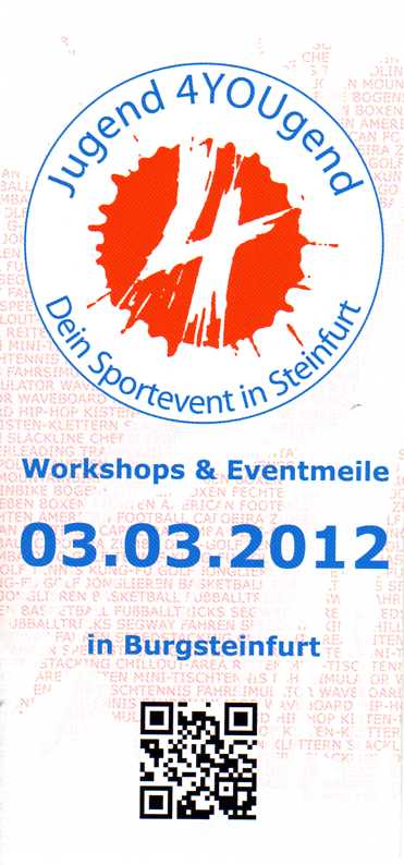 Hier sollen Jugendliche anderen Jugendlichen (ab 12 Jahren) ihren Sport zeigen, so das man mal über den eigenen Tellerrand hinaus schaut und unkompliziert andere Sportarten ausprobieren kann. Es werden verschiedene Workshops angeboten, in der Kreishalle an den Technischen Schulen wird ein großes Eventprogramm laufen, andere Vereine stellen sich vor (Reiten, Tennis, Golf, Tauchen .....) , die Verkehrswacht ist da, ..... jede Menge Interessanter Sachen wird es dort zu erleben geben!