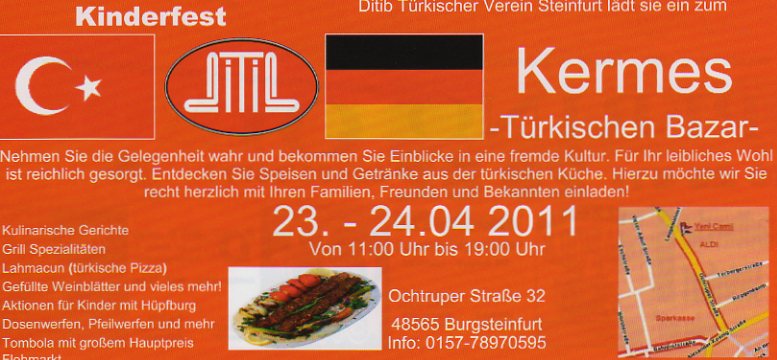wer noch nicht weis, was er am Wochenende essen soll, der sollte mal bei unseren Freunden von der Türkischen Gemeinde rein schauen. Für Kinder wird auch was geboten.