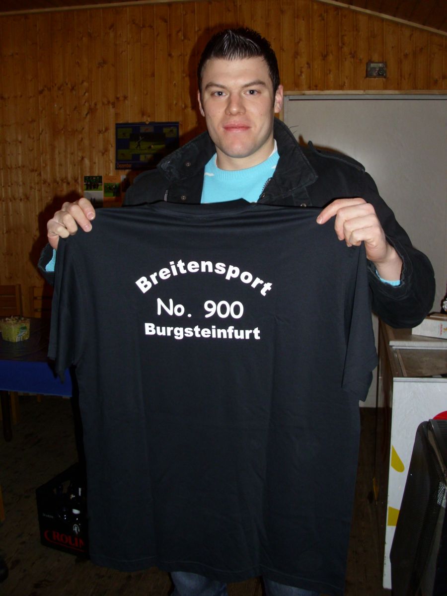 eigentlich hatten wir gehofft im nächsten Frühjahr die 900ter Marke zu knacken. Jetzt war es schon kurz vor Weihnachten so weit. Patrick ist das 900. Mitglied in unserem Verein. Er war früher schon bei uns, und ist jetzt mit dem StudiSport wieder dabei. Auf der StudiSport Weihnachtsfeier ließen es sich die Übungsleiter Vanessa, Sandra, Anja und Michi nicht nehmen, ihm zu gratulieren. Klar gab es auch ein kleines Geschenk. Ein 24 teiliges Erfrischungsset mit weihnachtlichen Trinkgefäß und ein BSB T-Shirt mit der Nummer 900.