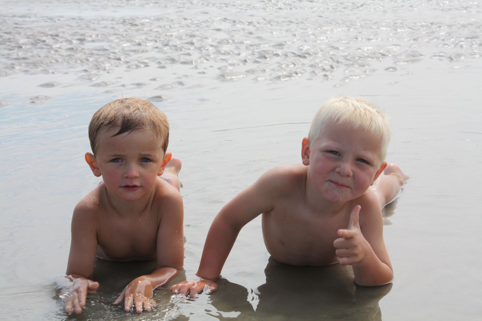 Dann klarte doch noch der Himmel auf und endlich kam die Sonne zum Vorschein. Ein Teil der Gruppe fuhr mit dem Rad ans Ende der Insel um dort das Naturschutzgebiet HET OERD zu erkunden und im Watt zu wandern. Das Ergebnis waren schmutzige Fuesse und glueckliche Gesichter.