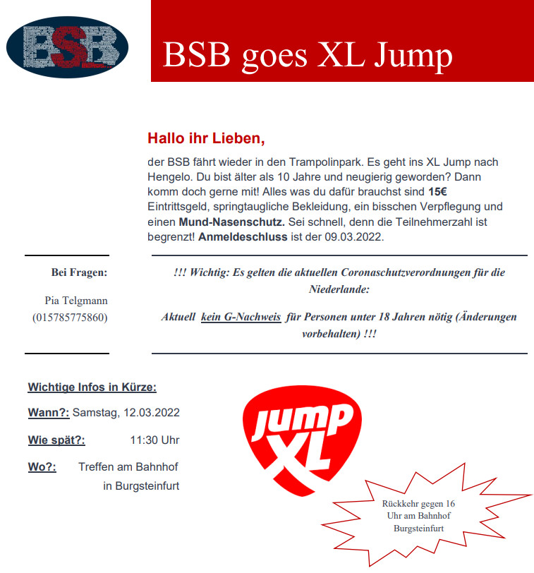 Anmeldung: https://www.breitensport-burgsteinfurt.de/files/2022_Fahrt-ins-Jumphouse_Anmeldung.pdf