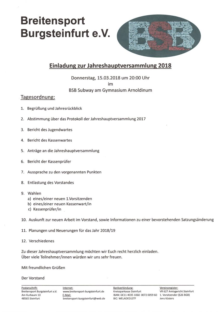 ich möchte euch herzlich zu Jahrshauptversammlung unseres Vereins einladen. Fristgerecht gibt es den Zettel ab morgen auch in den Sporthallen.