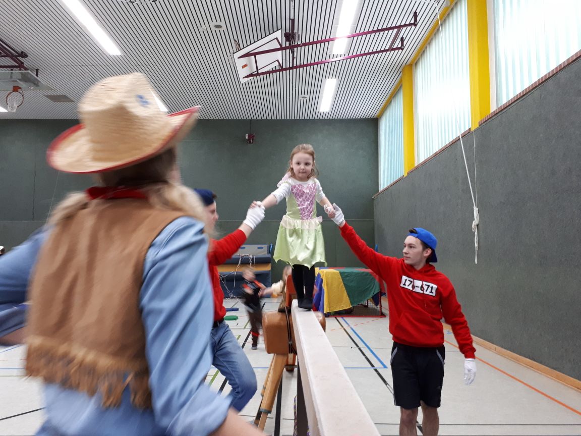 Viele Prinzessinnen, Cowboys, Feen, Feuerwehrmänner und Co. trafen sich in der Sporthalle des Hermann-Emanuel-Berufskollegs um beim Sportprogramm der besonders bunten Art mitzumachen.