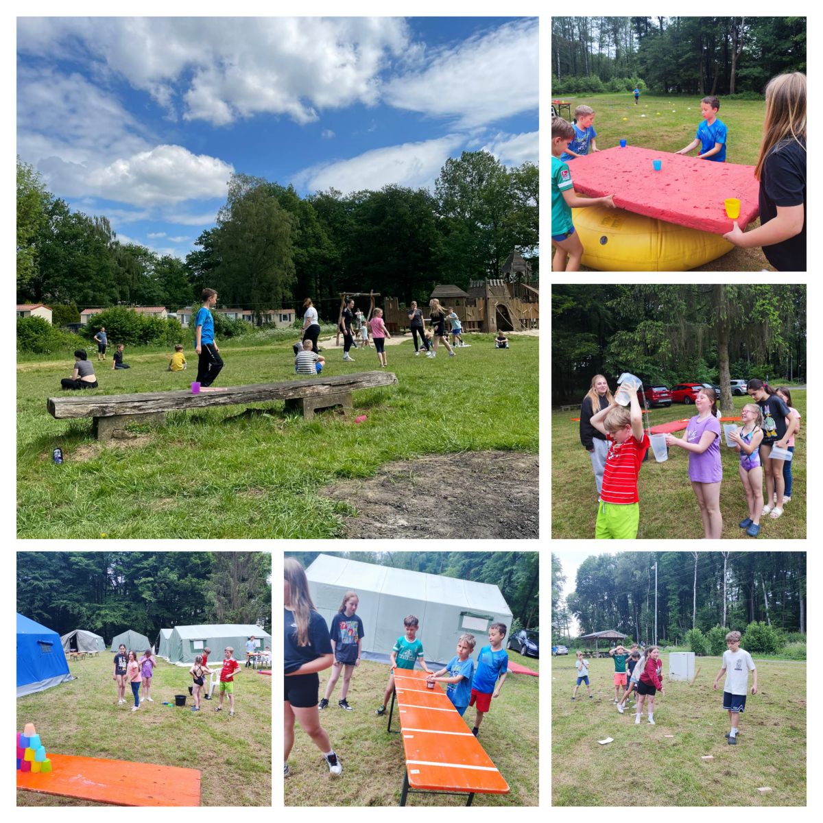 Das Zeltlager konnte nun wieder in vollem Umfang weiterlaufen. Trotz weiterhin starkem Regen in Steinfurt wurde gemalt, gebastelt, getanzt und gesungen. Das Programm überzeugte abermals mit Höhepunkten wie einer Talentshow, „Schlag den Teamer“ und der Lagerolympiade. Am Montag wurde es endlich warm genug, um eine Wasserolympiade zu veranstalten und im Köninck‘s See ausgiebig zu baden. Auch am Dienstag konnten die Kinder den See nochmals nutzen.