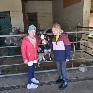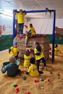Nach der Ankunft begannen die tierischen Stunden mit einer Tour über den Hof. Es folgten aufregende Entdeckungen: Kaninchen, Ziegen, Esel, Ponys und Hunde wurden liebevoll gestreichelt, die Strohburg erobert, im Maisbad "geplanscht" und auf Trampolinen oder dem XXL-Hüpfkissen herumgesprungen.