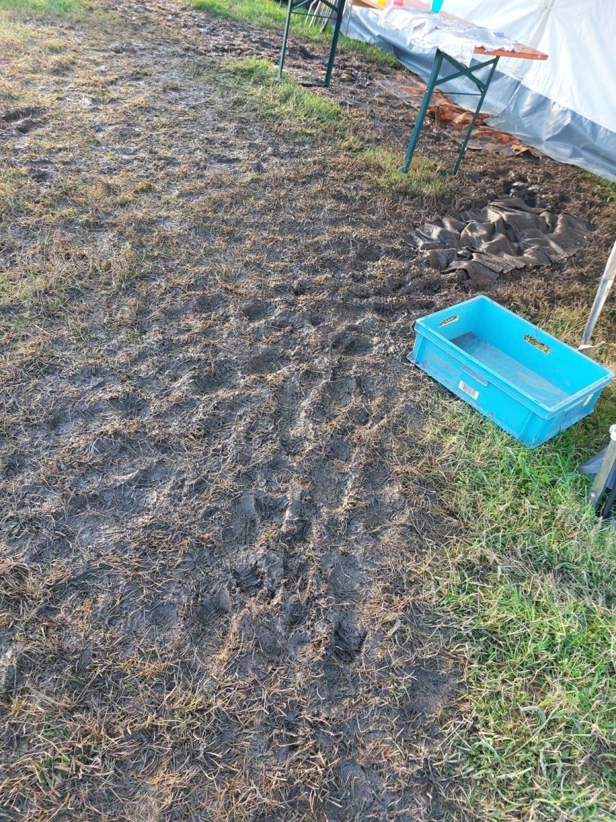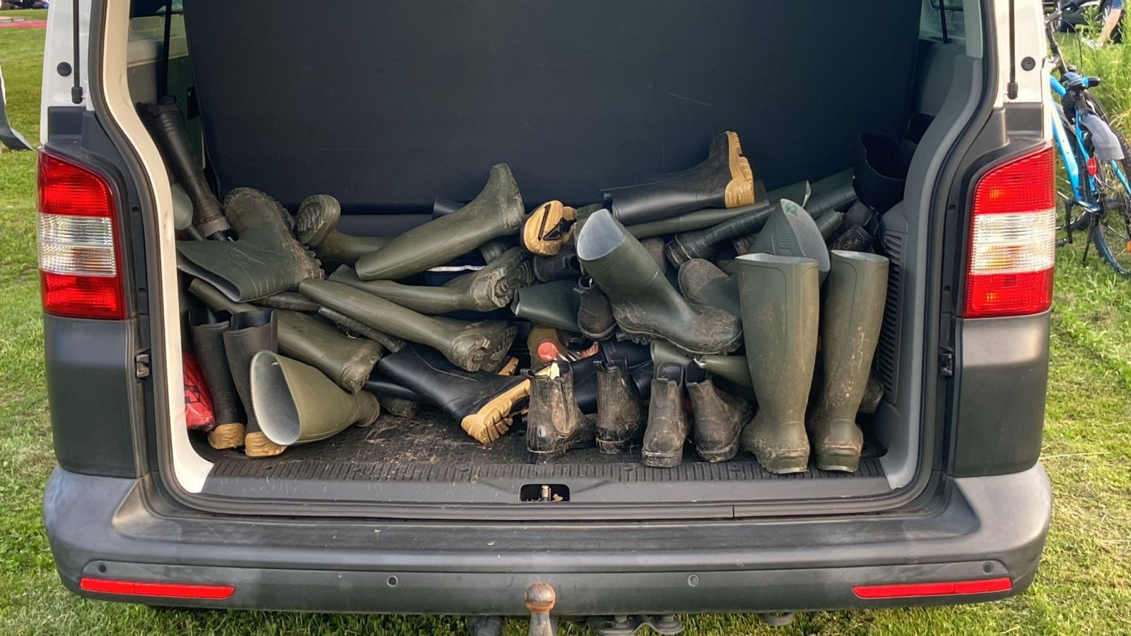Um dem nassen Untergrund zu trotzen, wurden schnell Gummistiefel für alle organisiert. So konnten die Teilnehmenden sich mit trockenen Füßen bewegen und die Pfützen zum Spielen nutzen. Doch mit der Zeit weichte der Boden immer weiter auf, besonders um das Küchen- und Gemeinschaftszelt und auf den viel genutzten Wegen. Als klar wurde, dass zum Wochenende hin noch mehr Regen zu erwarten war, mussten die BSB’ler sich auch in diesem Jahr dem Wetter in Bakkum geschlagen geben.