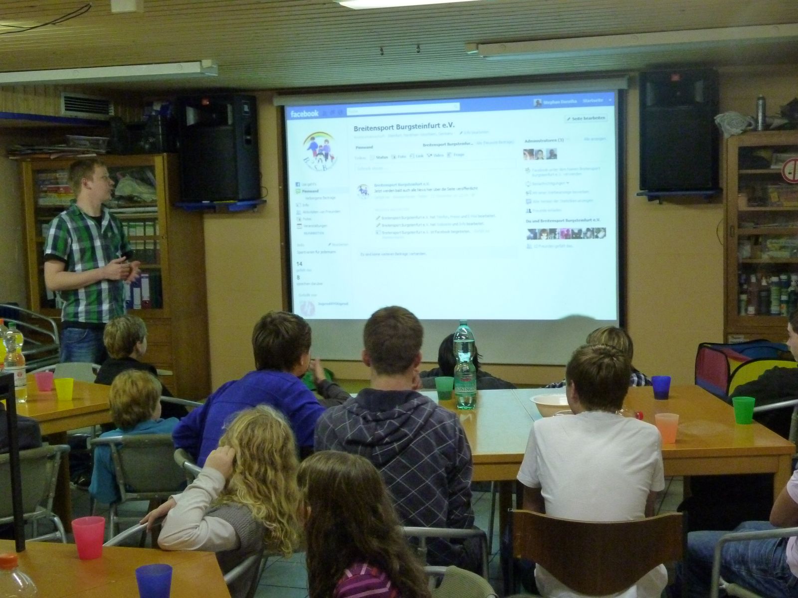 Dann kam ein neuer, bis dahin geheimer Programmpunkt. Die neue Vereins Facebookseit wurde vorgestellt und ausprobiert. Stephan Daratha unser Jugendwart hatte dazu einiges vorbereitet und ließ es sich nicht nehmen, die Jugendlichen eindringlich auf die Gefahren, besonders durch Fotos und Kommentare, hin zu weisen. Aber auch die Vorteile dieses Mediums kamen zur Sprache. So wird die schnelle Komunikationsmöglichkeit von vielen der Jugendlichen schon ausgibig genutzt.
